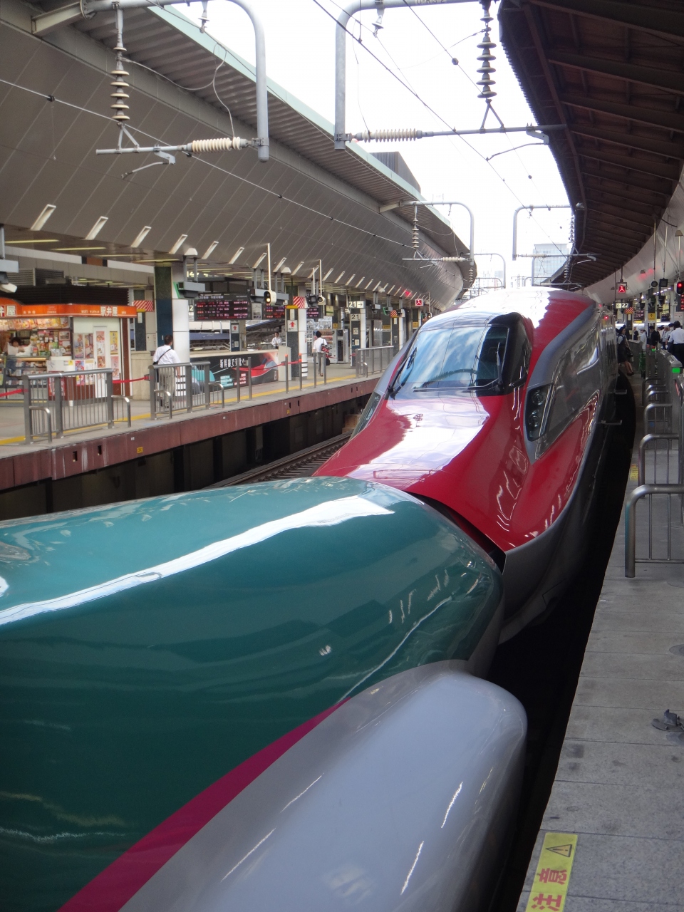 赤と緑の車両の連結です。なんともいえず素敵です。鉄道好きでもないのになぜか気分が踊ります。