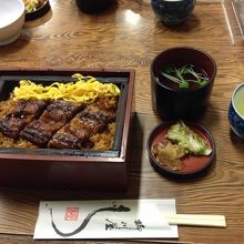 甘タレの味が付いた御飯に、うなぎが3切れ乗っていて、うなぎ・御飯とも甘さがしつこくなく、美味しかったです。
