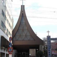 ビルの谷間、角地に建つ教会・・聖フランシスコ・ザビエル知ってますか。
