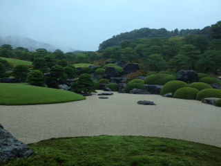 出雲大社に行ったついでに寄ったという感覚で期待しないで行きましたが、かなり良かったです。山の向こうまで続くのではないかと誤認するほどの雄大で手入れの行きとどいた庭園にはとても感動しました。開園と同時刻に入りましたが、誰もいないかと思いきやかなりの人が来ていました。しばらくすると団体客が次々と来たので、早い時間に行って正解でした。喫茶室は高いですが、庭をゆっくり眺めながらソファでくつろぐ至福の時をすごせますので、ぜひ訪れてください。早目に行って、早めに喫茶室の窓側を確保です!