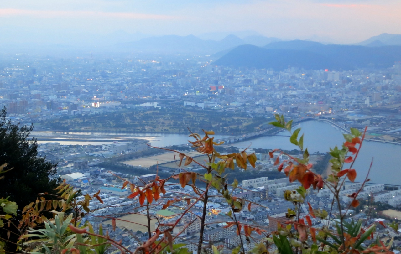 展望台からは黄昏迫る瀬戸内海と讃岐平野、