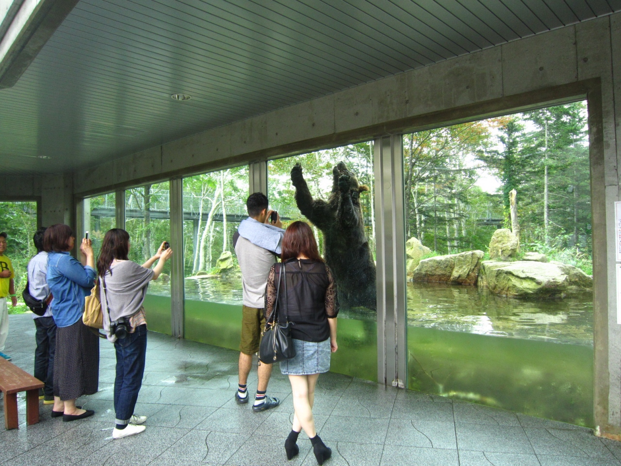 広大な敷地内にヒグマたちが野生に近い状態で生活しており、従来の熊牧場とは全く異なった森を悠然と歩く姿が間近で見ることができます。