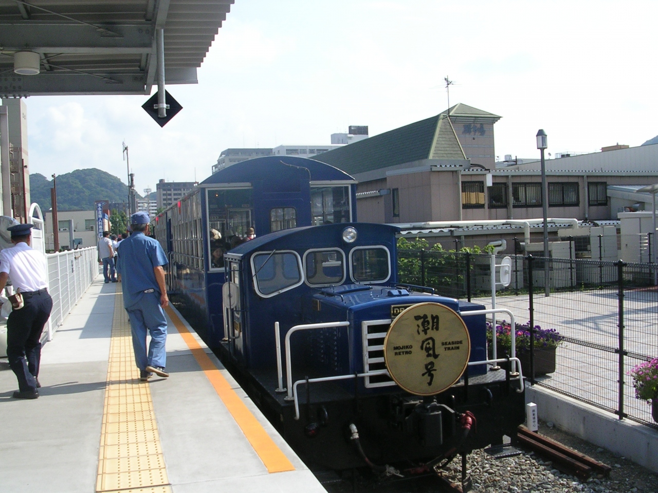 門司港駅すぐそばから、関門海峡に向かって走るトロッコ列車。海風を受けながら、ゆっくりと流れる車窓を堪能できます。終着駅の関門海峡めかり駅は、関門人道トンネルの入口に近く、歩いて関門海峡を渡ることもできます。春~秋のみの運行ですので、御利用の際はご注意を。