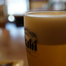 と女将に誘われ、店奥の大テーブルに・・・そして生ビールを一杯