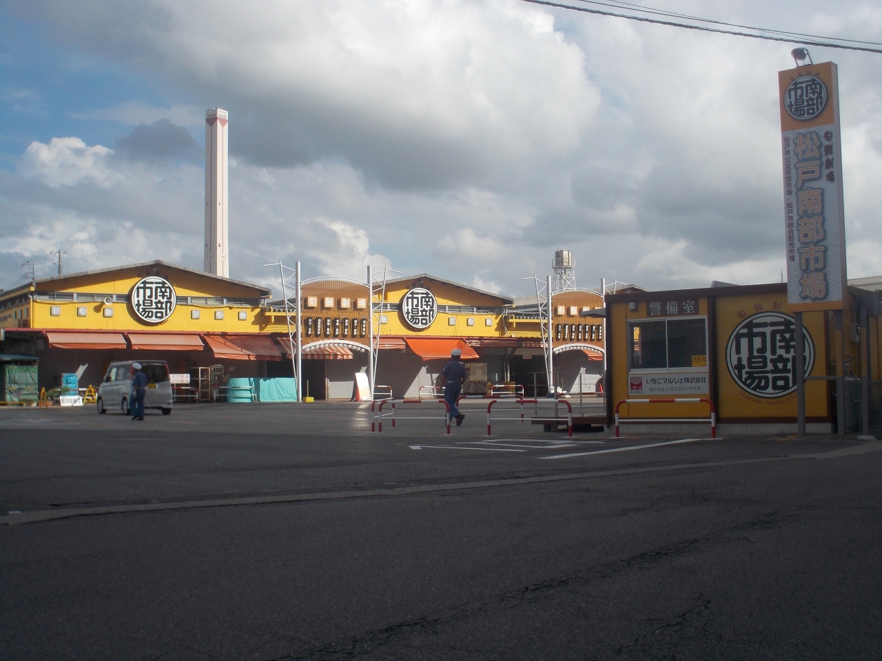 産業道路側から見て、野菊野団地の、ちょうど後ろに位置する「南部市場」は松戸市民の台所として、早朝から多くの人と車で賑わいます。 特にレストランや飲食業関係の人はこの市場で、材料を購入する事が多いです。 一般の人も購入出来るので、1度は見ておきたいものです。 JR松戸駅からは、路線バスで「野菊野団地」で下車し、歩いて3分位の距離です。