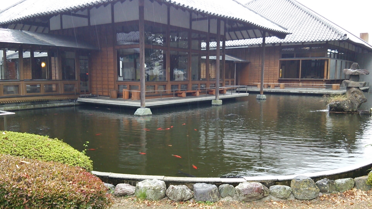 敷地内の産直センターでは地元のりんごを中心に販売しています。広場にはちょっとした展望台と無料のドッグラン、アスレチックがあります。一番の目玉は隣接した望郷の湯。まず入口横には手入れされた鯉の池が目立ちます。敷地内もきれいで、露天風呂もあるのですが内湯でも窓が大きいので閉塞感が無く気持ちがいいです。お風呂からの眺めは最高です。