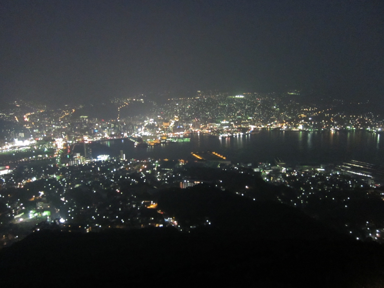 金曜の夜で、最初は人垣で手すりにちかよれなかったのですが、人が少なくなりゆっくり眺めることが出来ました。長崎の一番の目的がこの夜景でしたので、満足しました。