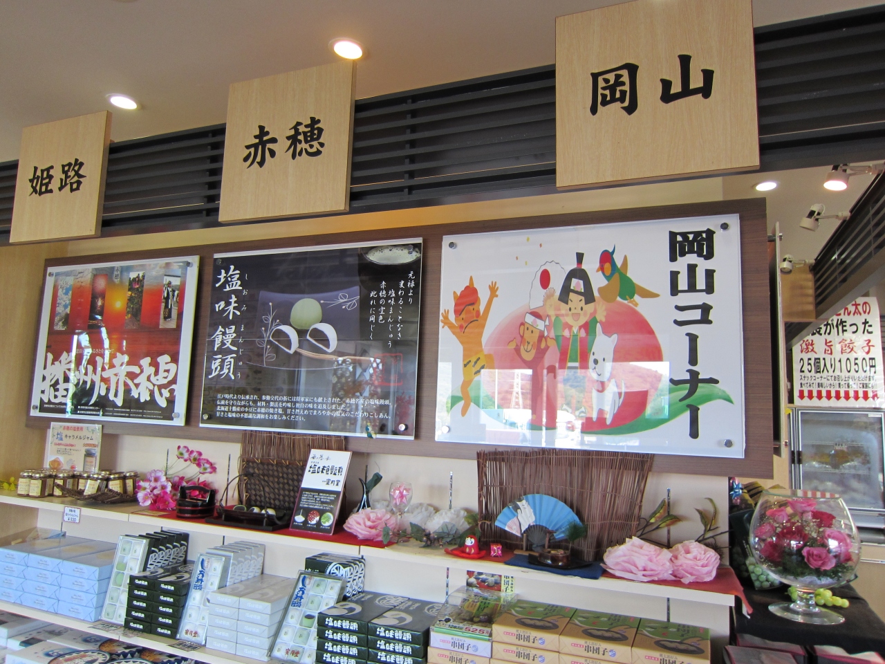小さいパーキングかなと思っていたのですが、今回初めて寄ってみて、お土産も、岡山・姫路などいろいろあるし、けっこう魅力的なパーキングエリアだなと思いました。
