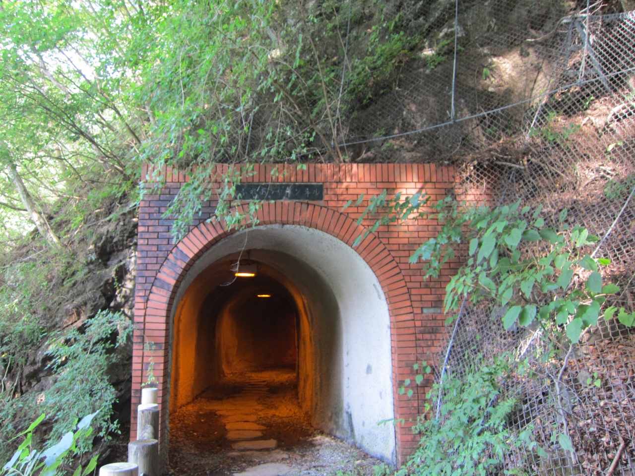 ツアーで行来ました。湖をぐるっと周る遊歩道があります。私が行ったときはトンネルに入れないと表示されていましたが、電気もついているし、他にも入っていった人がいたので私も入りましたが、どうして通行禁止かわからないぐらい何もありませんでした。入るかどうかは自己責任で。しかしぐるっと周ったほうが絶対にいいです。また、私は降りませんでしたが、階段があって川岸に降りられます。私が行ったときは、釣りをしている人がいました。トイレもあります。