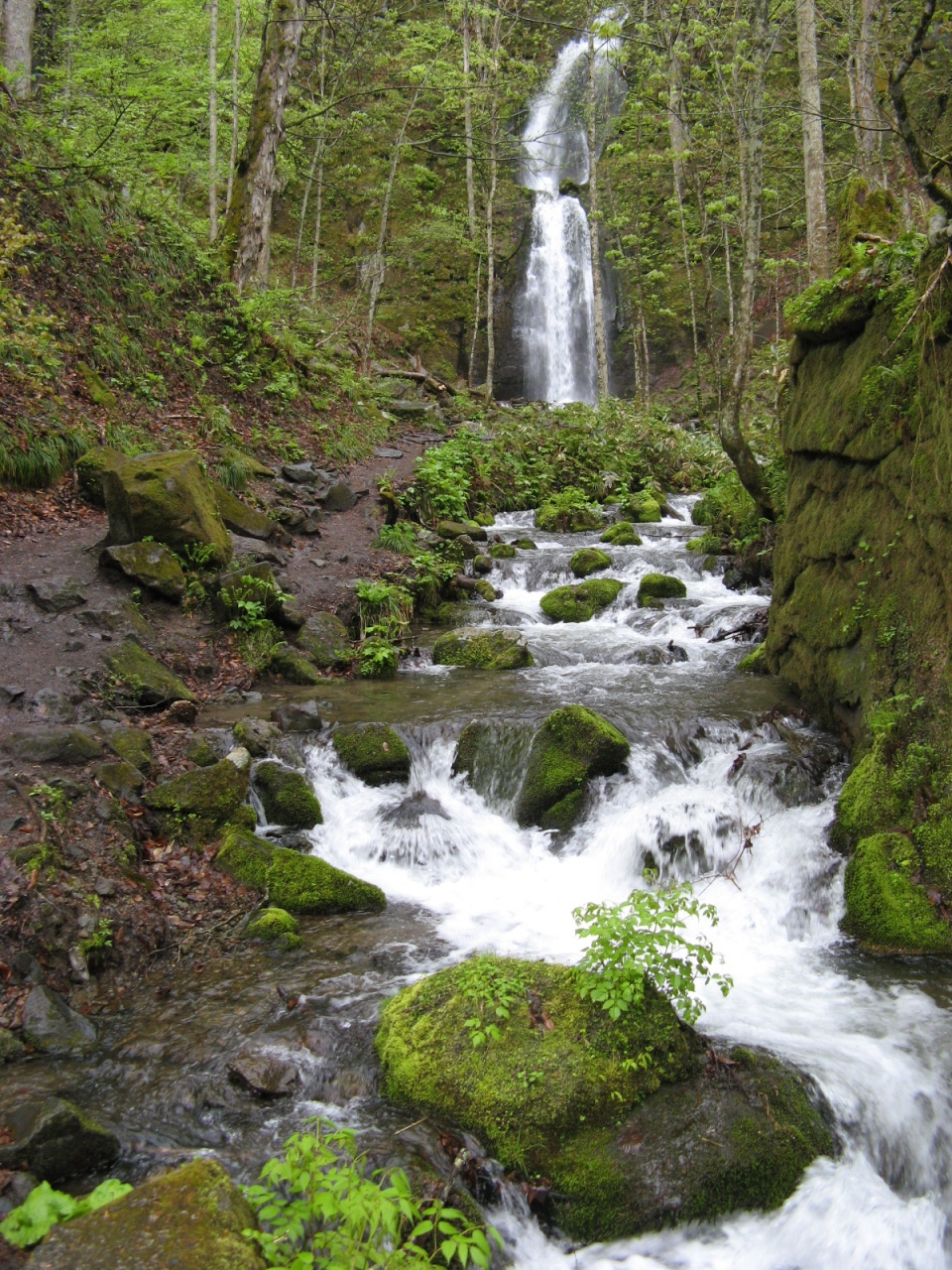 国道103号線から少し入ったところにあり、森林に囲まれた断崖から3段になって落下しています。奥入瀬渓流には沢山の滝がありますが、この滝は最も見ごたえがあり、多くの観光客が見に来ていました。滝のすぐ近く迄歩いていくとマイナスイオン一杯で気持ちがよかったです。