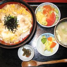 比内鳥が頂けるお店で、店内は綺麗です。きりたんぽ定食、きむら定食、チキンカツ丼、比内鳥の焼き鳥、唐揚げ等のほか甘味もあります。比内地鶏親子丼950円を頂きました。卵はとろとろ、比内鶏はやわらかく、それていてしっかり味があり、比内鶏のだしがご飯にしみて、とてもおいしかった。サラダ、味噌汁もていねいに造られていました。