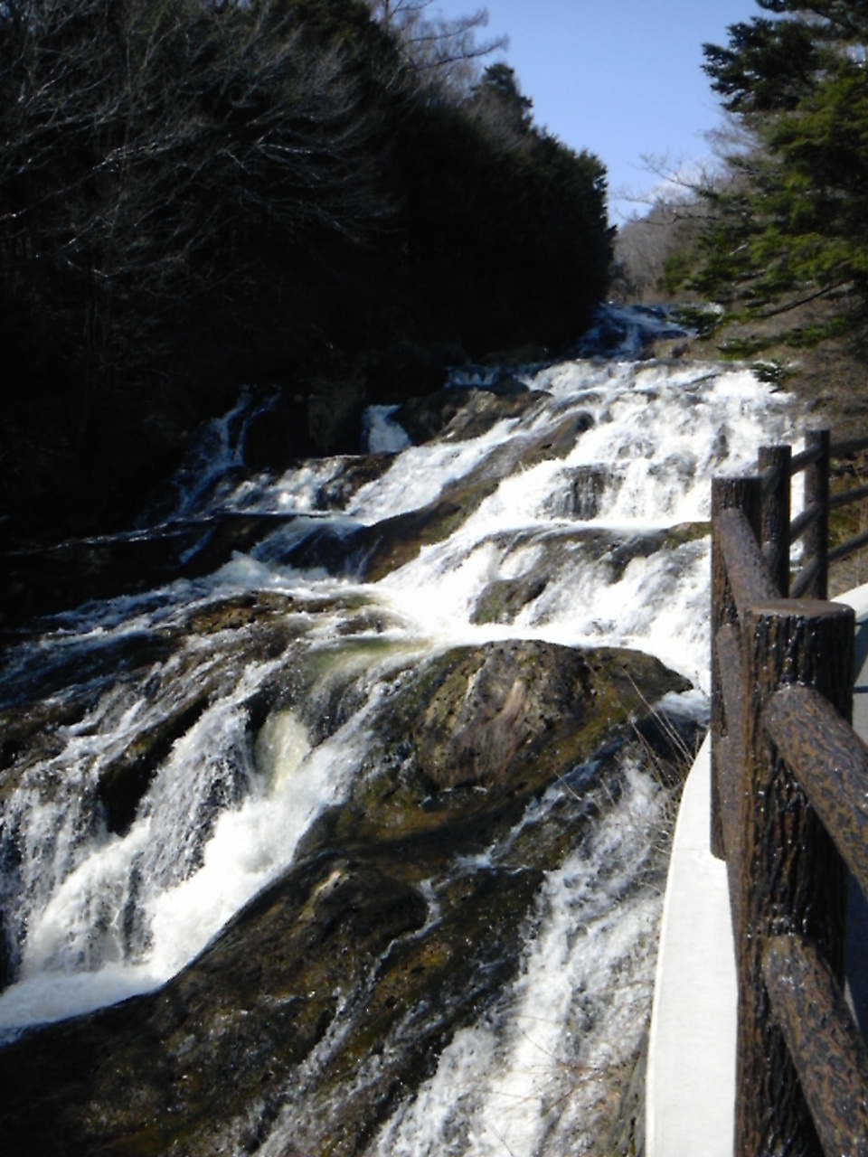 迫力という意味では華厳の滝より落ちますが、岩に砕かれて無数の白波がたつ景観の美しさはこちらが上だと感じます。