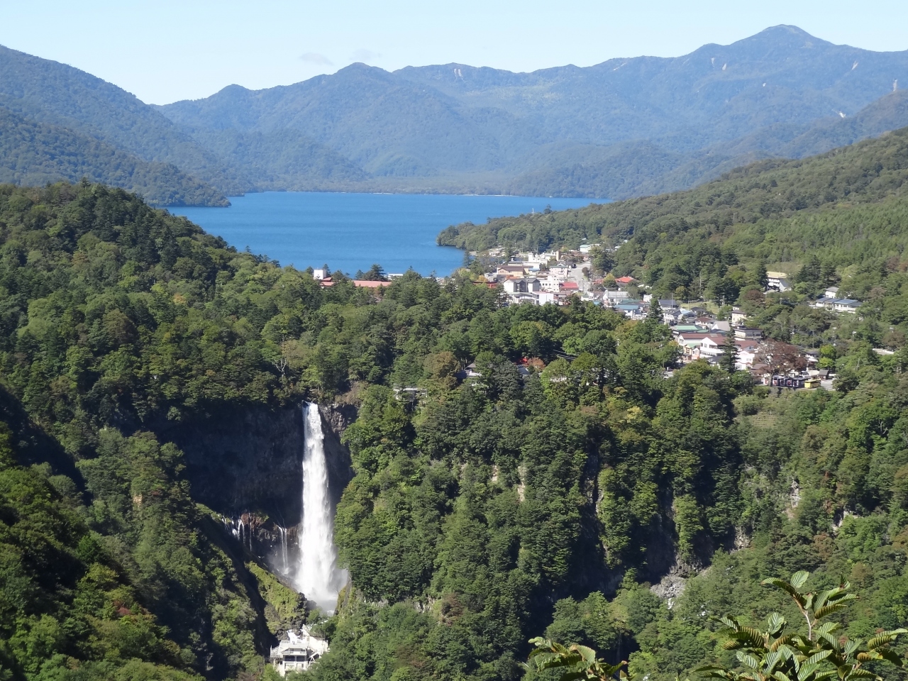 数日前に台風で大雨が降ったので、華厳の滝の水量がすごくて迫力ありました。中禅寺湖の青い湖面も綺麗です。