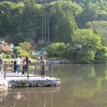 周りにカフェや飲食店があるので、そちらだと金鱗湖を眺めながらお食事ができるのだと思います。連休の9時ごろですが、すでに観光客がけっこういました。