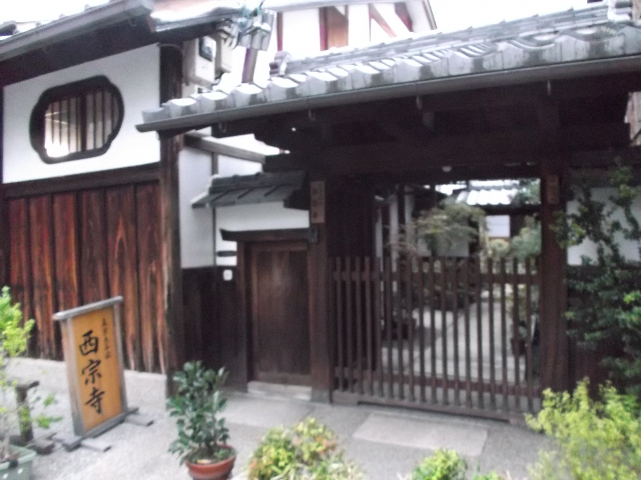 東本願寺の東方向、間之町通り天神町の文子天満宮の目の前に小ぢんまりと佇んでいます。浄土真宗大谷派のお寺です。中には入れませんでしたので門からの様子ですと庫裏と一体となっているようです。前庭は手入れが行き届いて、京都の小寺の風情あります。
