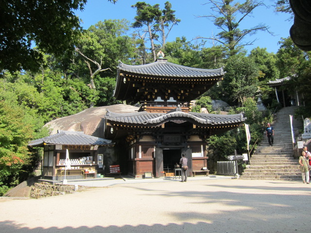 宮島ロープウェイ山頂駅から約20分ほどで着くとされているお堂で、弘法大師が修行に使った火が、1200年以上も経った今も霊火堂の中で燃え続けているそうです。その消えずの火にちなんだのか、「ふたり絆を深めよう!」とあり恋人の聖地とムリヤリしている。