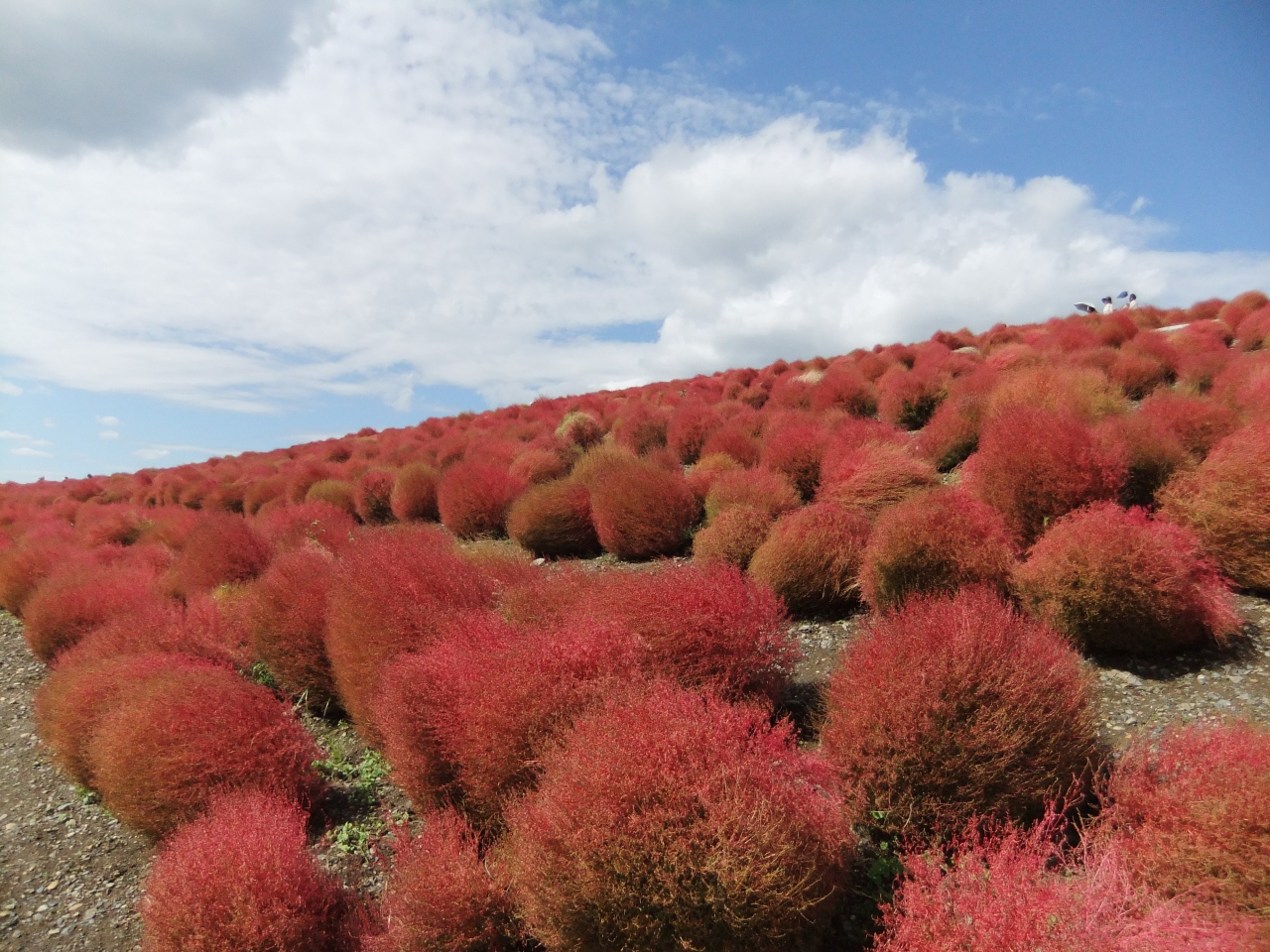 赤いもこもこしたコキアの丘はとてもキレイでした。