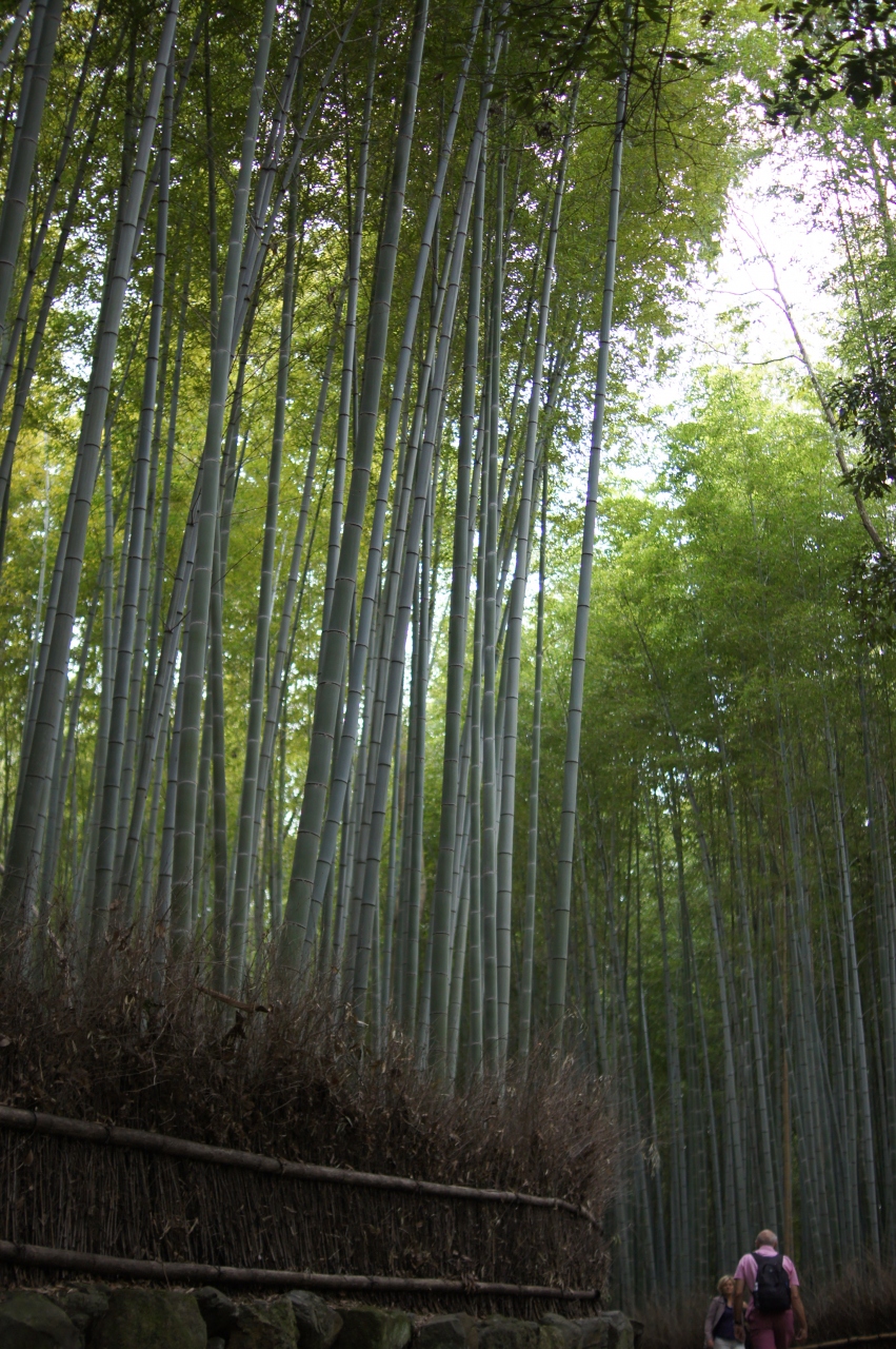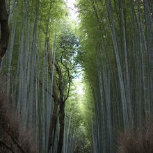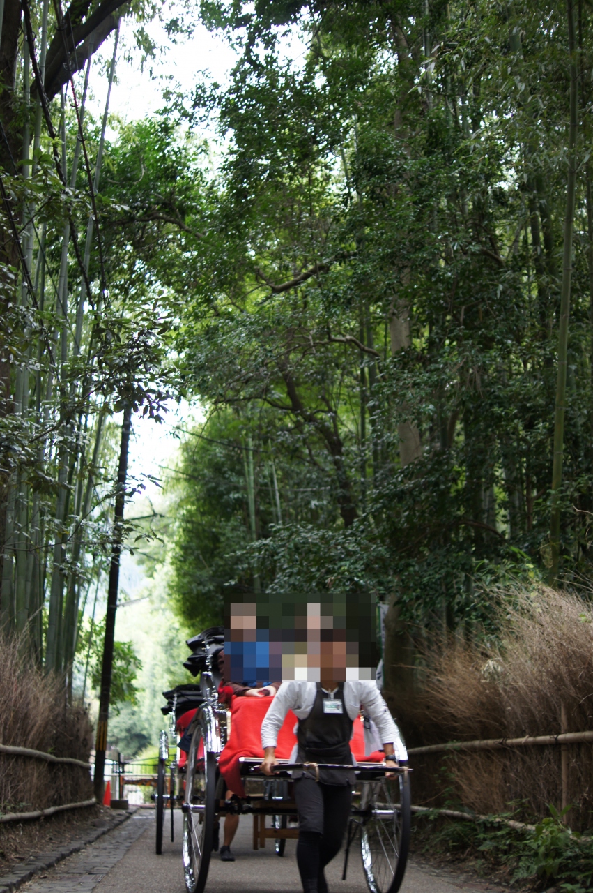 青々とした竹林が囲む小路は嵯峨野の人気スポット! 平日も多くの観光客で賑わう癒しの空間である。外界とは空気感さえも違うような錯覚に陥るこの道は、成人男子がゆっくり歩いて約15分ほどの距離だが人力車も利用可能である。