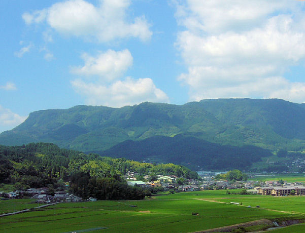 万年山は標高1140m。JR久大本線北山田駅の南側に、平らな尾根が延びています。