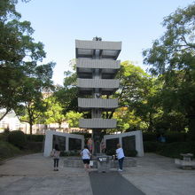 原爆ドームの直近南に位置しており、地上12メートルのブロック状のモニュメントで八羽の鳩が配されて平和を祈り、慰霊を行っている。