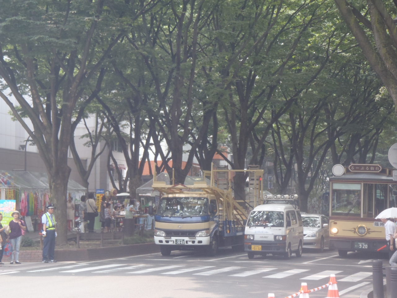 アーケードのようになるケヤキ並木の間を歩けるので夏は日差しを遮る事が出来てとても涼しい。