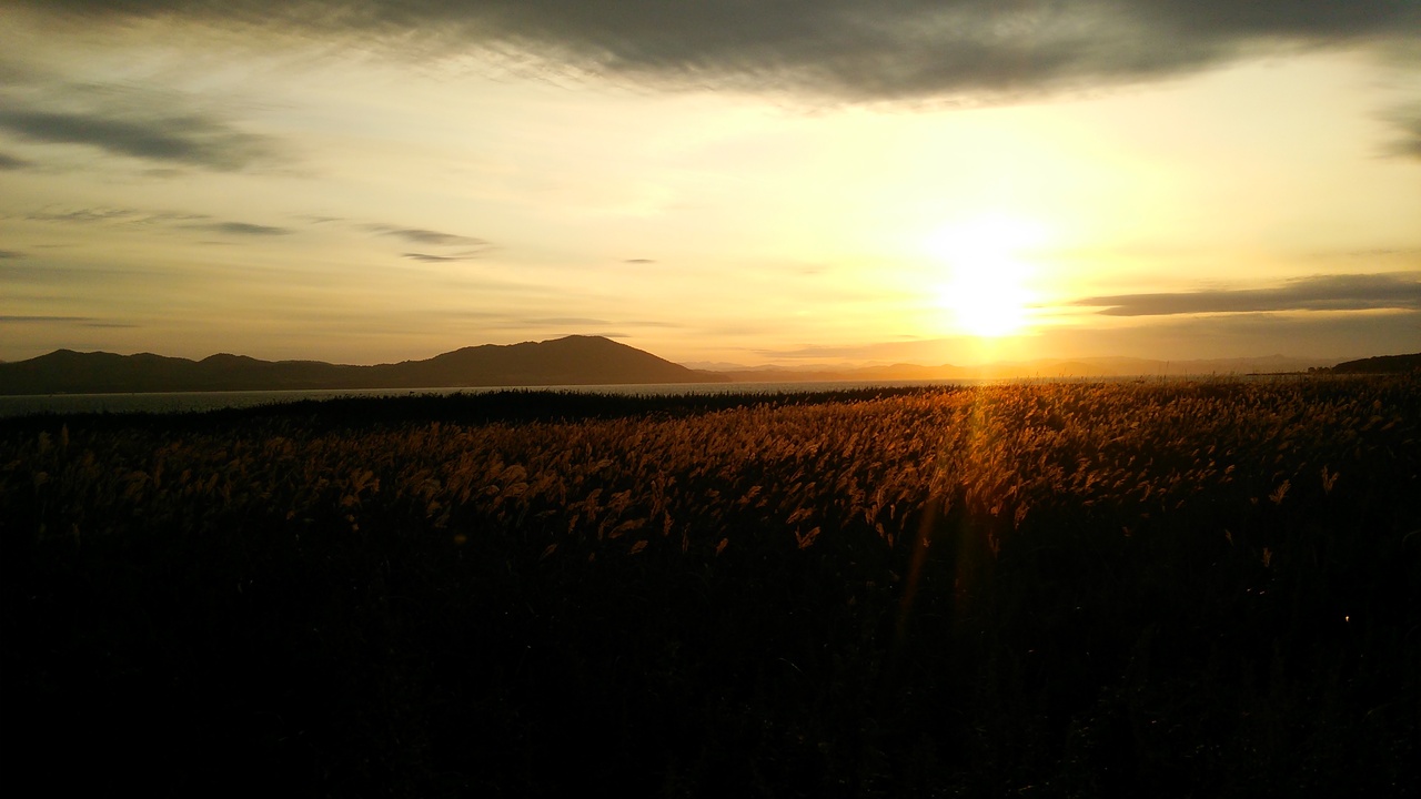 夕陽がサロマ湖やすすきの原っぱを照らす様はきれいでした。
