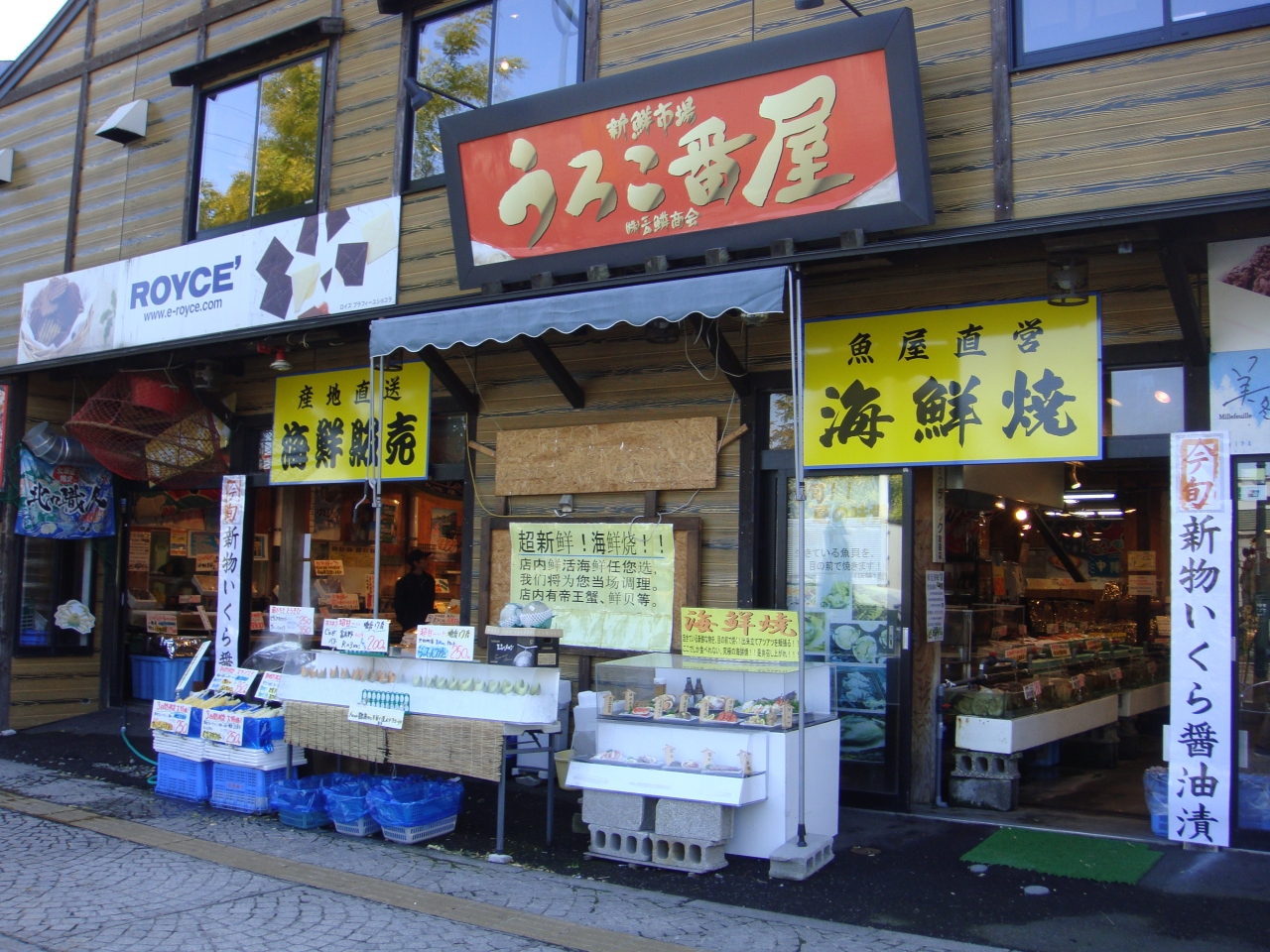 小樽運河プラザ近くにある海鮮市場で、魚介類を選んだものをその場で焼いてくれる食堂と土産物店が併設されています。ただ観光客相手のため値段は高めに設定、それも外国人が主体のようです。ですから昼時と言うのにほとんどお客さんはいませんでした。