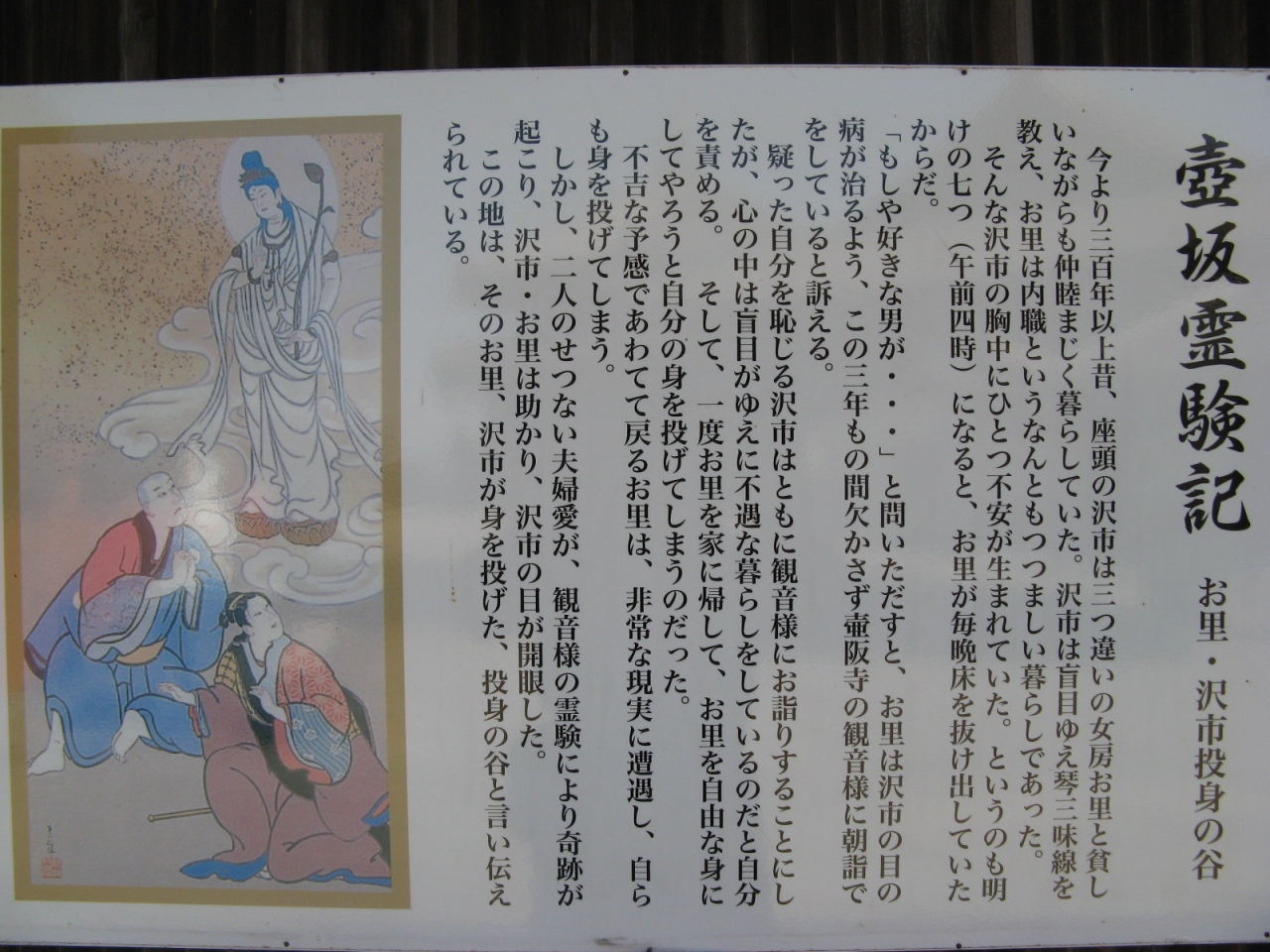 高取山の中腹にあり見晴らしの良いお寺さんです。本尊十一面観音は眼病に霊験があるといわれ、お里・沢市の夫婦愛をうたった人形浄瑠璃『壺坂霊験記』の舞台としても有名で説明板が表示されていました。境内には沢山の仏像や大きな大仏、大観音、巨大涅槃図など見所が沢山あります。