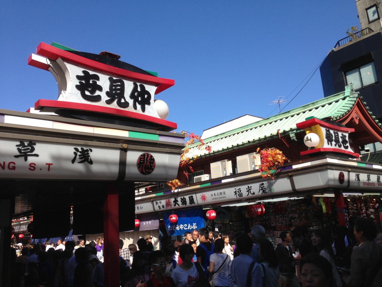 雷門から浅草寺へ続く1本道です。いろいろな店が左右に建ち並び、休日ということもあり観光客でごった返していました。ここは、人形焼やあげまんじゅうなど名物のお菓子が多く食べ歩きに便利だと思います。ただ、道の真ん中で食べたり、歩きながら食べたりは禁止の様です。