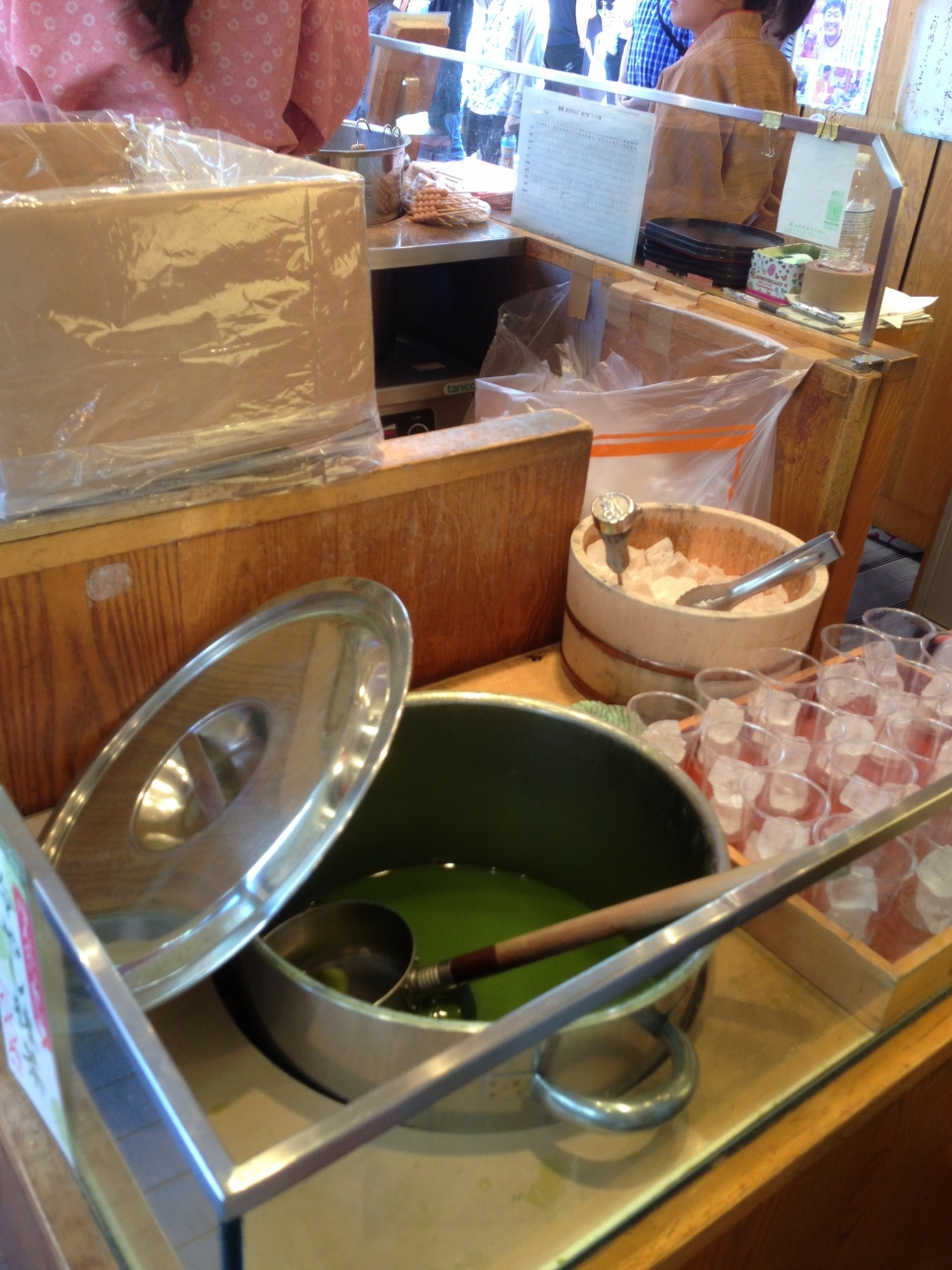 仲見世を浅草寺に向かって左側にあります。店員さんは皆、女性で、着物を着ており浅草に来たことを実感させてくれます。接客はてきぱきとしていて行列ではありましたが、1−2分で買えました。キビ団子は5本入っており300円、甘めの抹茶は100円でとても合う組み合わせでした。