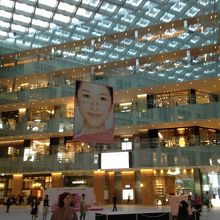 中は、広い吹き抜けで、解放感があり、吹き抜けを取り囲むようにテナントが入っています。