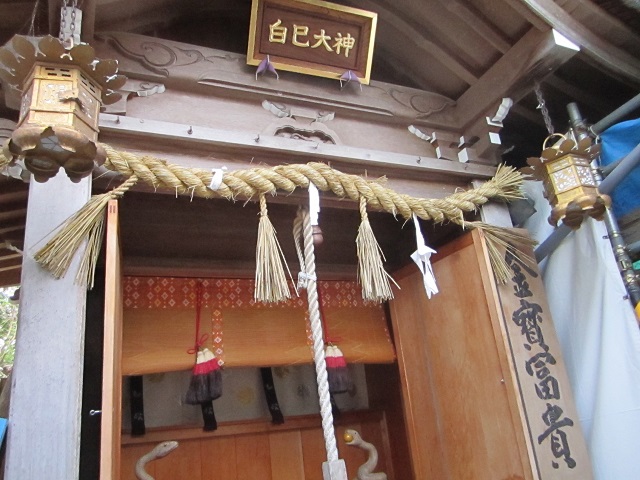 また、ややこしいことに、弁才天は別の蛇の神様とも習合してしまったことで、弁才天は蛇や龍の化身として扱われるため(そういえば、江ノ島の弁才天にも竜口山の五頭竜、っていう組み合わせがあったような。。。)、都久夫須麻神社内には、白蛇様が祀られてました。そういうことを予め知っておいた上でお参りすると、お参りの際の「ツボ」というか見るべきポイントも奥深いものになりそうです。