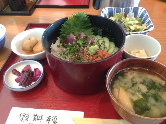 ランチメニューは6種類ほど。今回は海鮮丼を注文しました。味はおいしかったのですが、醤油を入れる小皿がなく丼にそのまま醤油をかけることに…。後で気づいたのですが、他のお客さんはご飯を取り分けるお椀と醤油皿が用意されていました。さらに、食べ方についてスタッフに質問しても微妙な反応。サービスは平均点以下でした。