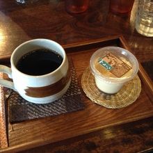 ロールケーキかプリンが選べるセットは、500円とお得です。コーヒーに付くミルクも牛乳なのが嬉しいですね。