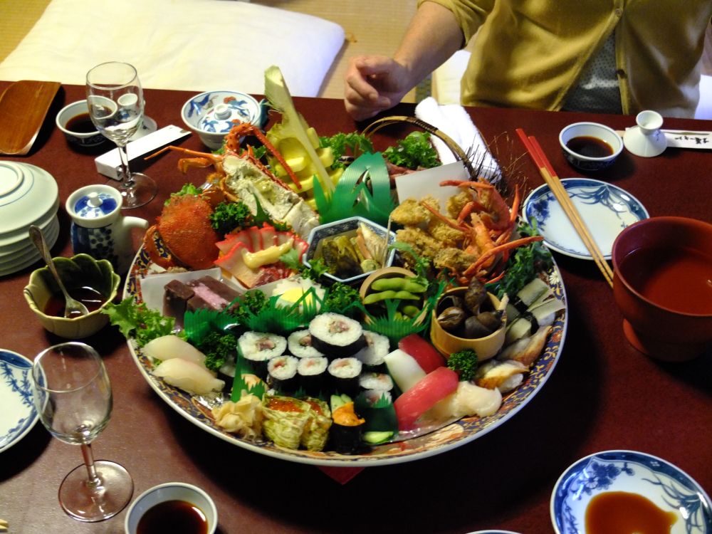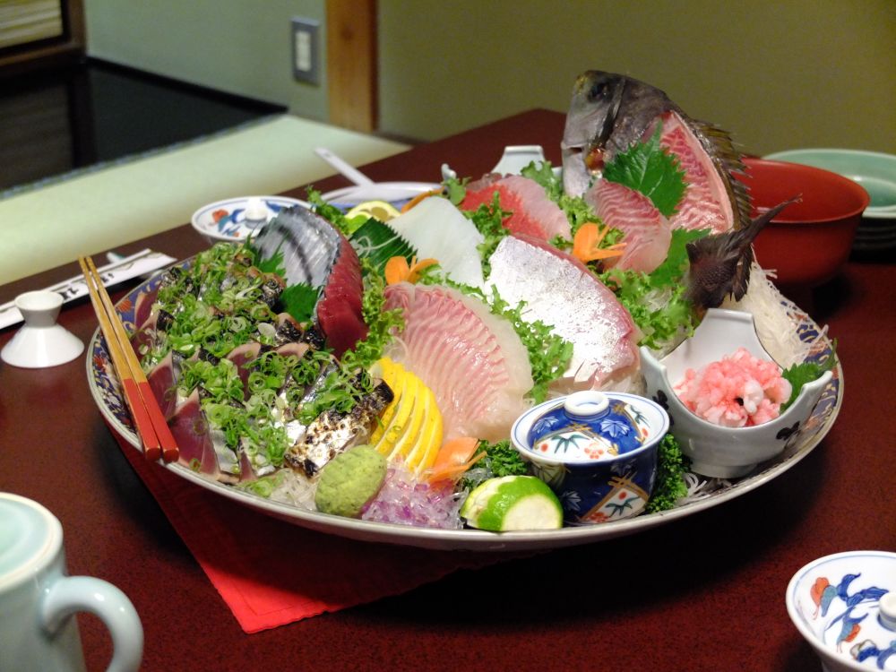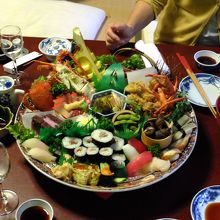 食事はとても豪華。皿鉢とカツオ、お寿司と食べきれないほどで、それぞれ絶品でした。器も素晴らしく目でも楽しみました。