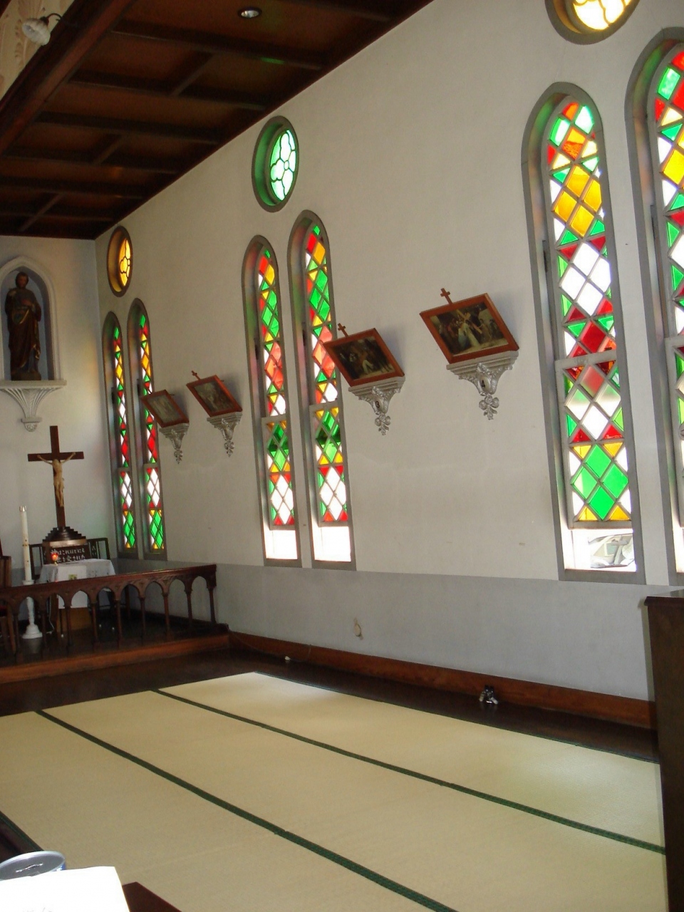 協会内部は広くなく、清楚で美しいステンドグラスと他では見ることのない畳敷きの祈りの場が印象的でした。津和野を訪ねたらぜひ入ってみることをおすすめします。心が洗われるような気持ちになると思います。