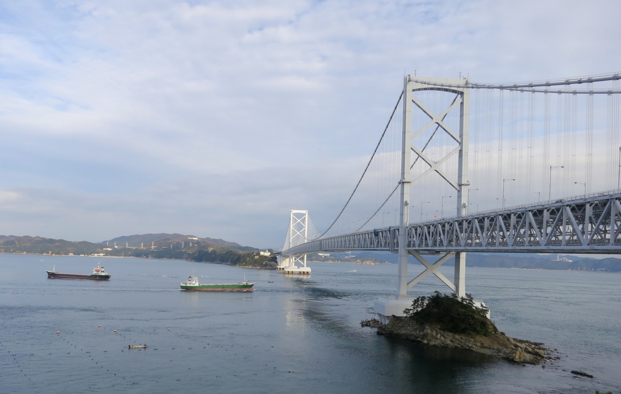 淡路島と鳴門市の大毛島を結ぶ1629mの吊り橋。