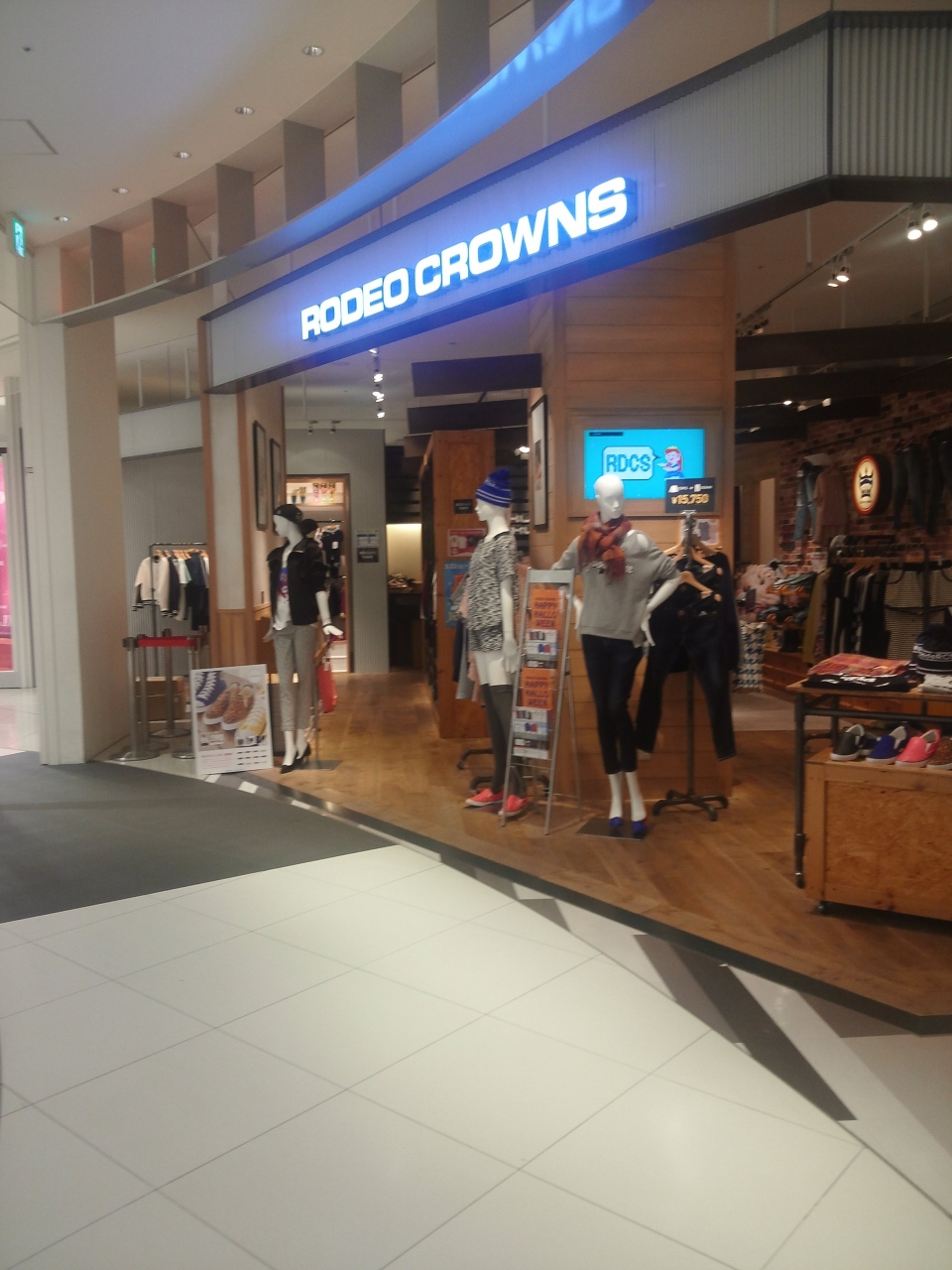 109系のショップのロデオクラウンズです。服以外にも靴が売られていました。ちょと大人びた服が売られている印象でした。可愛いデザインもあり、色味も素敵なものが多いのですが、ただ可愛いだけではなく、クールさも兼ね備えていてボーイッシュな感じがします。