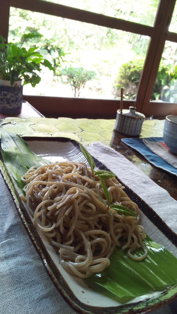 宗像の旧唐津街道にある古民家の蕎麦屋さんです。店内はまるで田舎の親戚の家のようなごくごく普通の和室。庭が見える席はそれなりに雰囲気があります。そばながしというセットを頂きました。暖かいそば、冷たいそば、デザート、コーヒーです。ソバはつるつるとこしがあり、とてもおいしかったです。デザートのチーズケーキもおいしかった。ただ量が少ないですね。女性でもちょっと足りないかも・・・。店員のおばちゃんたちが少し騒々しく感じました・・・。