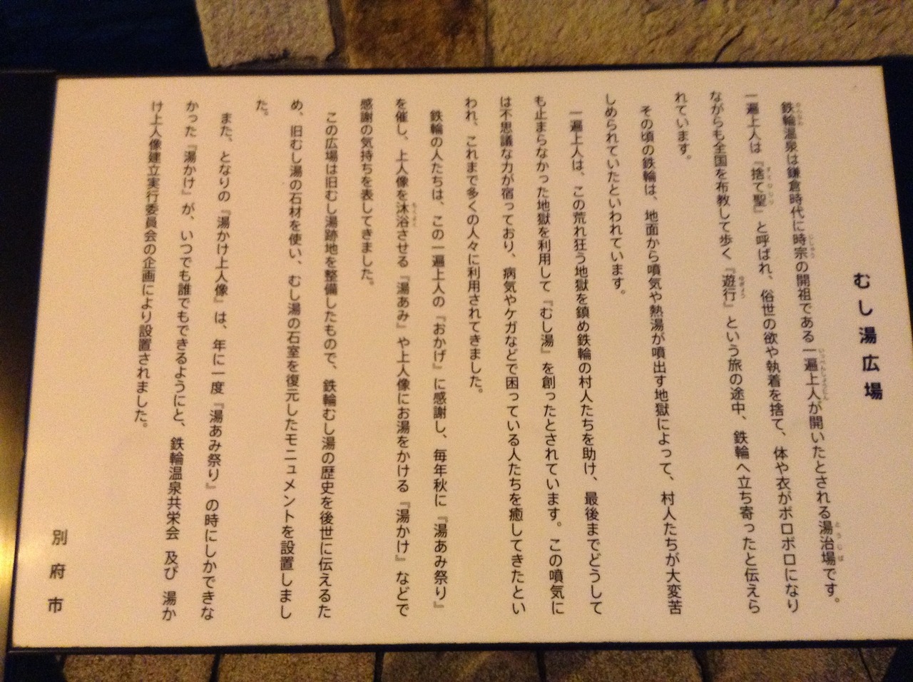 一遍上人がこの地に蒸し湯の温泉を開いたことを記念して蒸し湯広場になっており、昔の蒸し湯の湯室を再現した建物があります。
