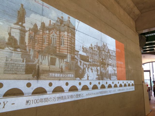 毎時0分・30分に、万世橋駅の歴史を紹介するスライドショーが投影され、2つ保存された往時の階段のうち新しい方(といっても昭和初期)の階段ではタッチパネルでいろいろな写真を詳しく見ることができます。