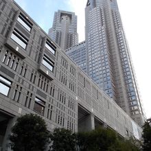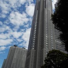 新宿駅西口の高層ビル群の中でも、ひときわ目立つ巨大なビルがこの都庁です。