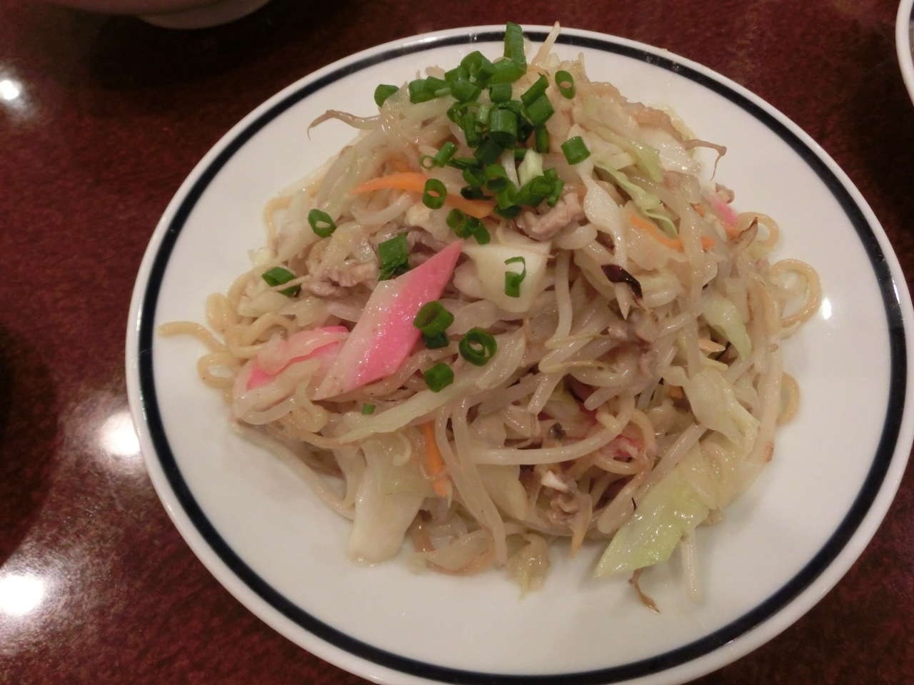 訪れた人数が多かったので、シェアして、ちゃんぽん、細麺のあんかけの皿ウドン、太麺の焼きそば風の皿ウドンと3種類を同じテーブルの4人で分け合いました。