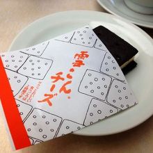 始めに喫茶店の方へ。広いスペースにテーブルとイスが置いてあるだけで、ちょっと殺風景。観光客よりも地元の方が多いようでした。カフェオレ(ホット)と雪こんチ−ズ(150円)を注文。雪こんチ−ズは賞味期限が2時間ということで、店に行かないと食べられません!ベイクドチーズケーキがココアビスケットに挟まれているのですが、ビスケットはさくっとしていてチーズは濃厚でとてもおいしかったです。オレオのようにビスケットの味がしつこくなかったのも◎