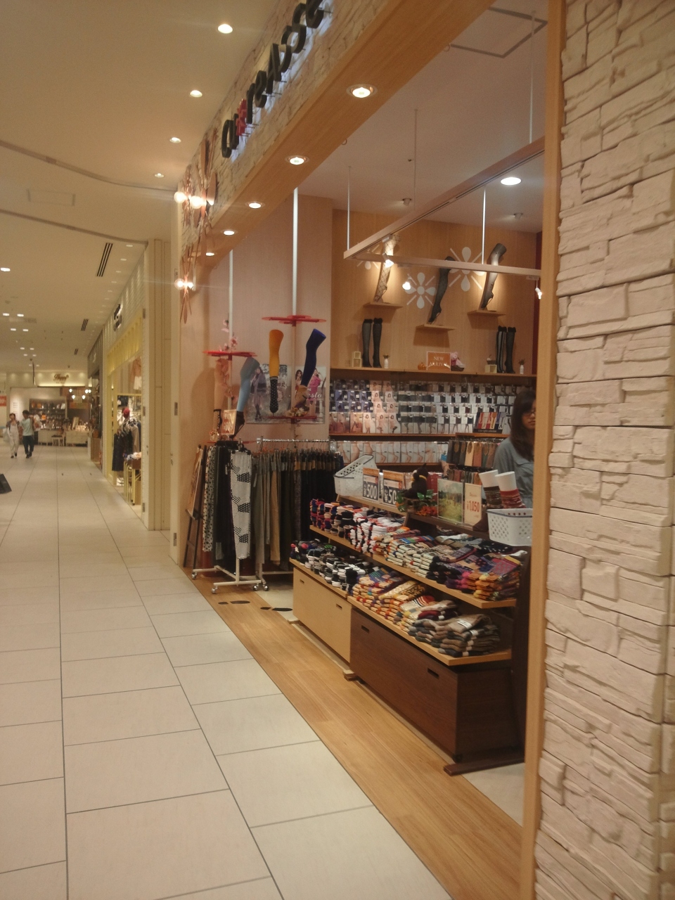 シンプルな中にも可愛らしさとトレンドを取り込んだ おしゃれなライフスタイルをコンセプトのキュアアッセです。ショップ内は、ひたすら靴下、ストッキングなどがいっぱいありました。可愛いものからベーシックな物、派手目の物まで幅広く揃っています。