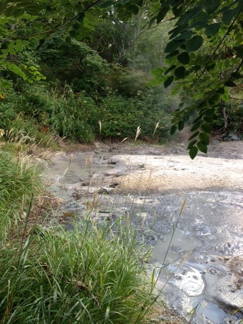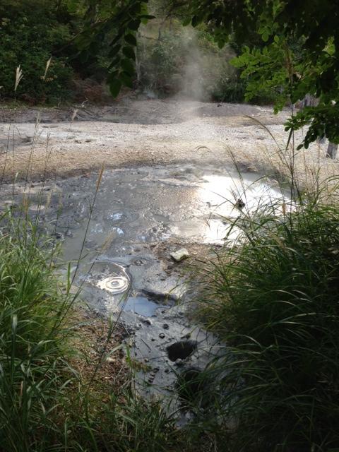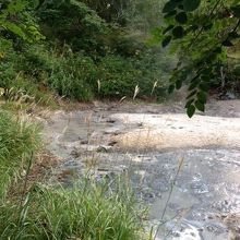 硫気ガスや水蒸気などがぼこぼこと噴き出しています。