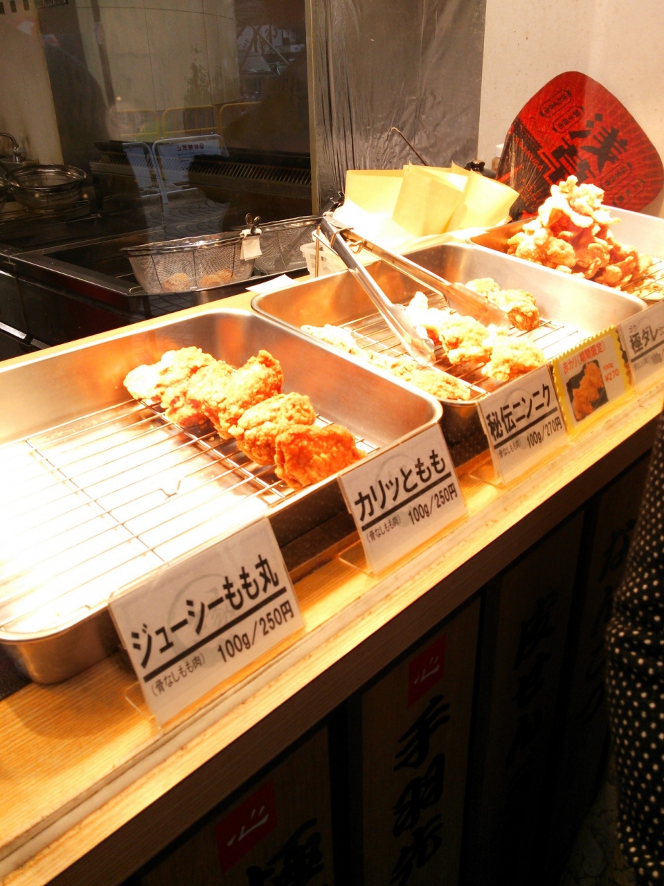 テレビ番組で見たので、ディナーまでの間のスナックとして、来店してみました。注文してから揚げてくれるので、10分弱ほど待ちました。100グラムの料金が表示してあったが、個数で注文OKとの事。5人だったので、6個注文。
