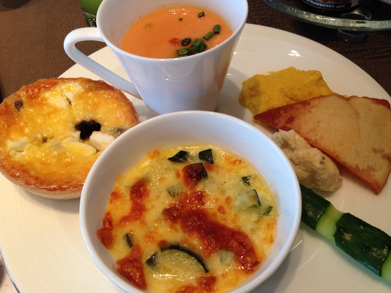 ホテル朝食では評判の高いシャングリラ。以前はコールドミールだけのコンチネンタルもあったはずですが現在は3900円サ13%別のフルブッフェだけになっています。ホットミールはかなり種類があり卵の個数が指定できたり人気の中華粥があったりと充実。その分、パンやペストリーが貧弱になった印象です。味の面でもそれほど突出したレベルではなかったかな。