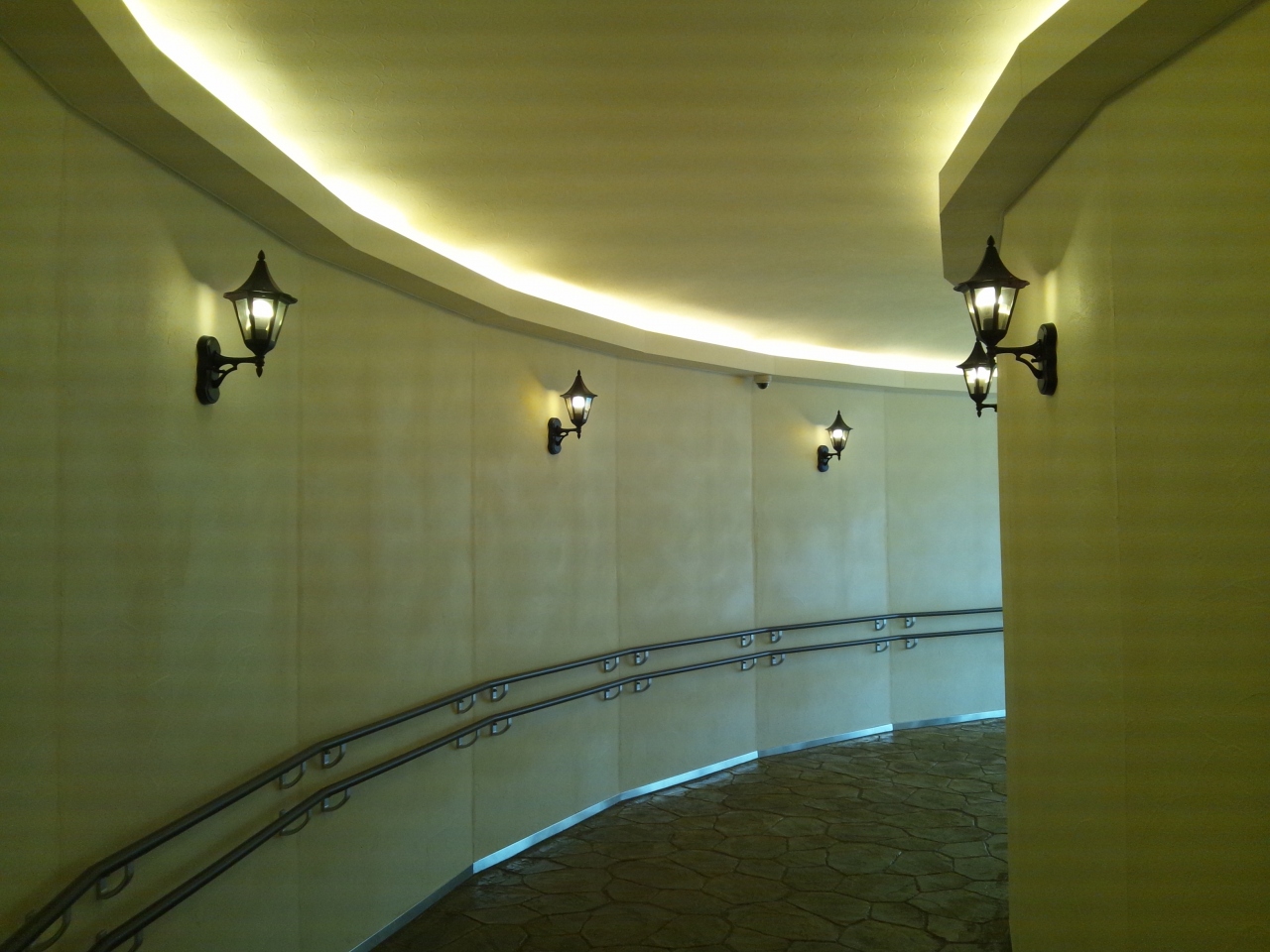 南欧ちっくな建物はトイレ通路にまで及んでおり、トイレ空間の斬新な造りに思わず感心してしまいました。