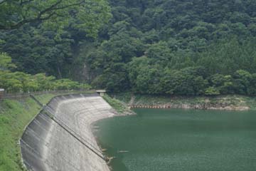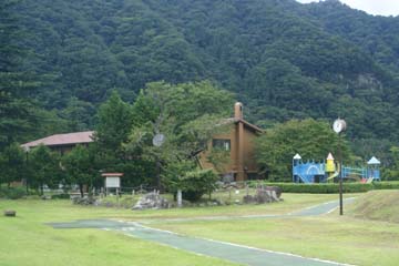 逆さ桜があるあたりは、相俣ダムで出来た赤谷湖に面した赤谷湖記念公園で遊具があり、赤谷湖が見渡せます。ダムの建設で湖の下に沈んだ猿ヶ京温泉は、対岸に移転して、台地の上に見えています。